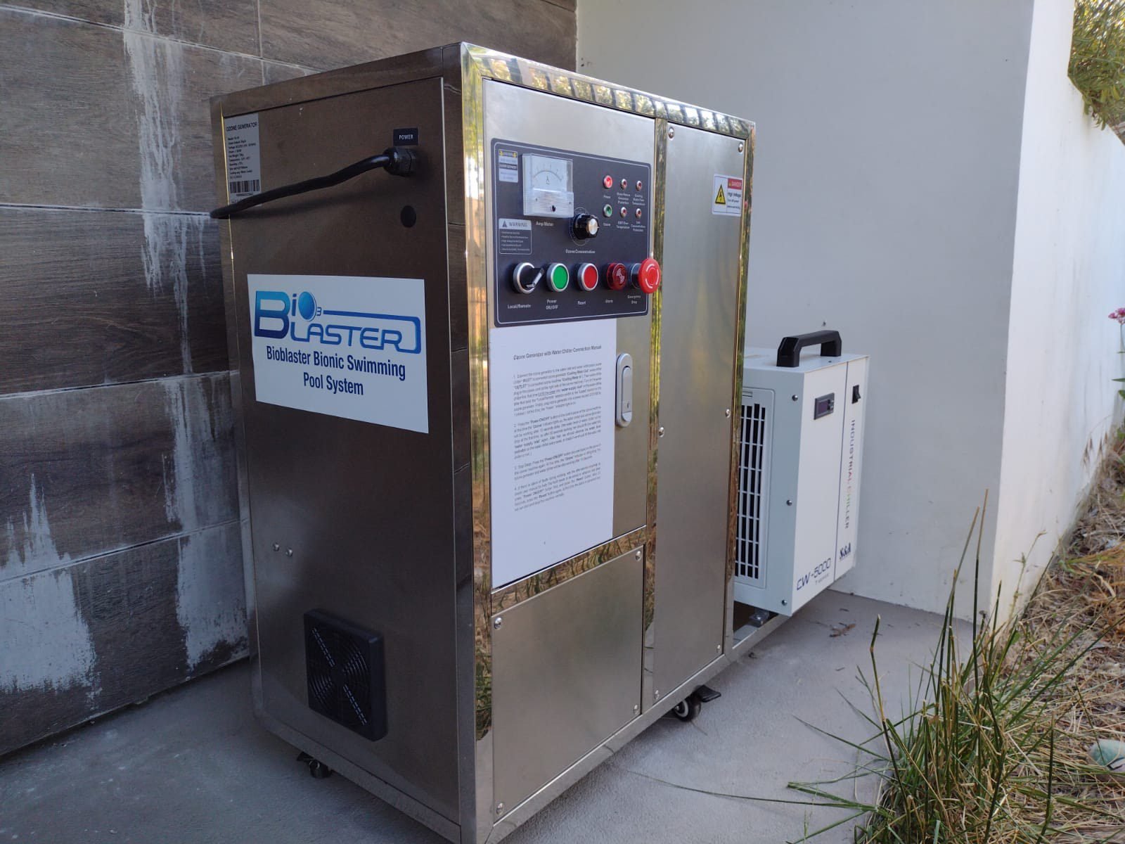 bioblasterThe ozone systems I found were also very low output from that which is needed to actually oxidize the contaminants in a meaningful way. Most of these system use low Milligrams of ozone per hour, in the hundreds and not tens of thousands of milligrams, needed to truly sanitize and kill contaminants. These systems promised less chlorine but not the elimination of it. Additionally even if they did generate enough ozone, you would have to run the system 24 hours a day 7 days a week, greatly reducing the lifetime of the ozone generator and costing lots of money in the form of electricity consumption. Running your pool pump all day and all night can really add up! Not only don’t they produce enough ozone all of the systems fail to actively mix the ozone and to nanotize the bubbles of ozone and most of it ends up off gassing immediately and not working effectively.